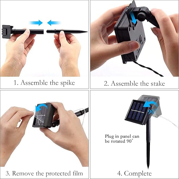 - [SOLAR POWERED & LONG WORKING TIME] Solar-powered string lights are energy-saving, provide solar energy, don’t require any additional electricity costs, and no battery replacement. The blue solar fairy lights outdoor sensor controls the solar rope light to automatically turn on in the dark and turn off automatically during the day. High performance and high capacity battery can work for 8 hours or more, giving you a night of lighting.
