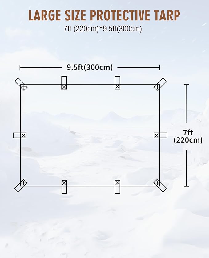 - Heavy Duty Tarp Cover: Size 7x9.5 ft (220x300 cm). HIRALIY tarps will keep your goods undamaged from rain, snow, dirt, and sunlight. HIRALIY tarp is convenient to carry and frequently use. NOTE: Please measure carefully the size of your item before purchasing to ensure that the tarp is large enough to fully protect your covered things