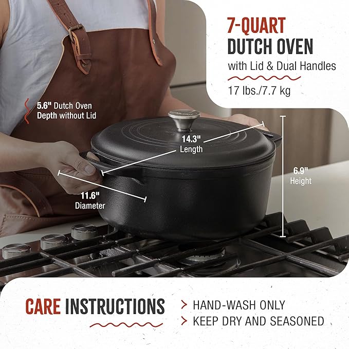 - ✔️Our 7 Quart Dutch Oven weighs 17 pounds this means durable and high quality.