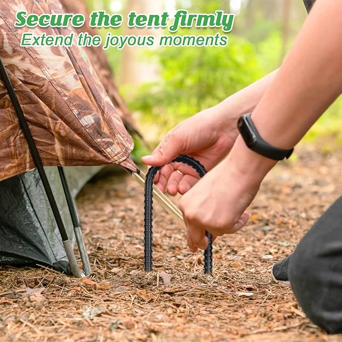 - 【KEEP YOUR KIDS SAFETY】Children's safety should be given priority. 12 inch U-shaped rebar stakes can prevent the trampoline from overturning or moving during use,and protect children from falling down and hitting the ground. For the safety of your baby and the peace of mind of parents, every parent should consider buying some extra things to fix your trampoline,camping tent or your child's football goal and swing