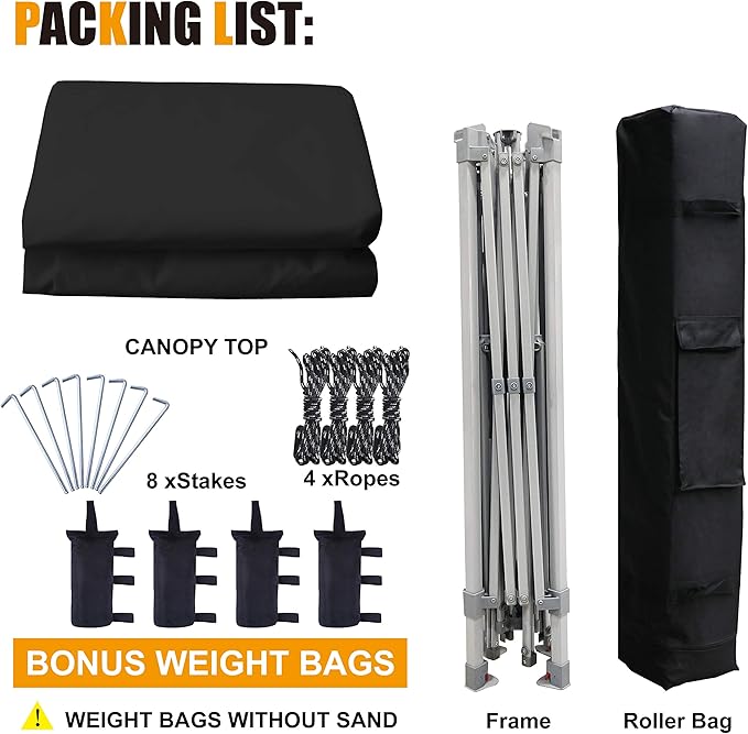 - 【PARTS INCLUDED】Fully assembled powder-coated steel frame,CPAI-84 Flame retardant silver coated canopy top,600D heavy stock wear resistant roller bag,4Xsand bags,8Xstakes and 4X ropes. If you have anything about our products, We are ready to help you.
