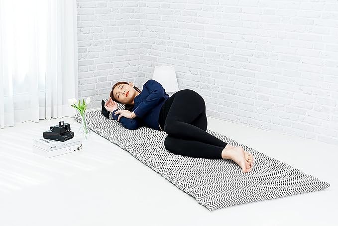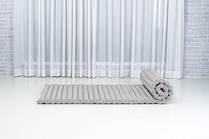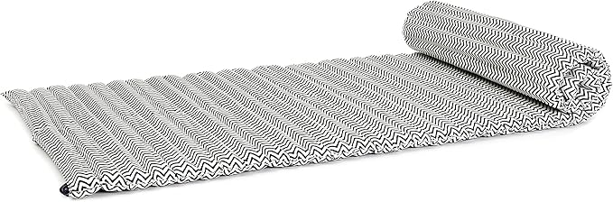 Leewadee - Foldable Floor Mattress - Japanese Roll Up Futon -Trifold Tatami Mat- Guest Floor Bed - Camping Mattress - Thai Massage Mat, Kapok Filled, 75 x 28 inches, Black White