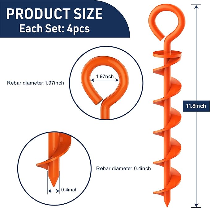 - Easy Installation: Included with each set is an iron rod installation tool, making it effortless to drive the stake into the ground securely.With the corkscrew shape design,this canopy stake can better penetrate into the soil.