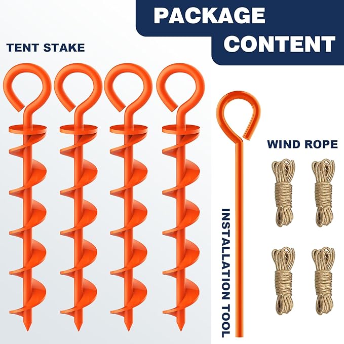 - Package includeds: 4 stakes, 4 flat ropes and an installation tool. With this package, you get a complete tent anchoring solution,everything is included.