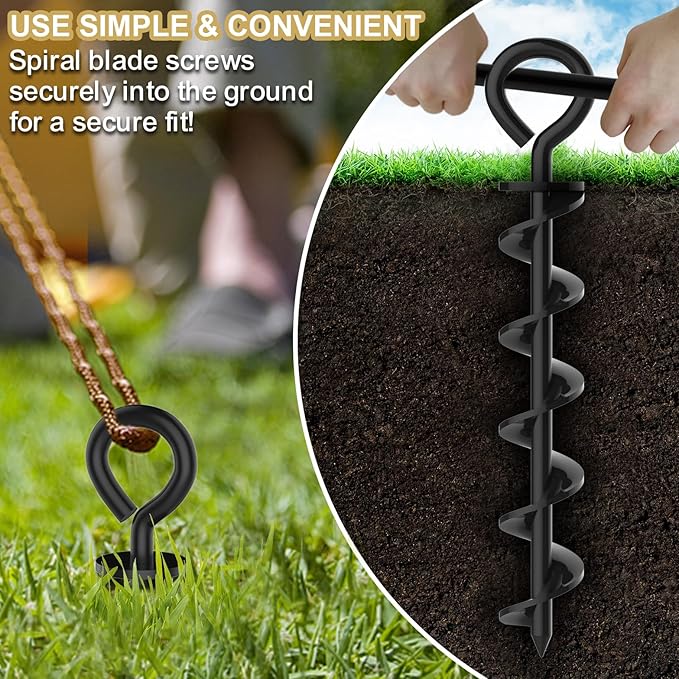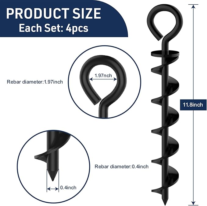 - Easy Installation: Included with each set is an iron rod installation tool, making it effortless to drive the stake into the ground securely.With the corkscrew shape design,this canopy stake can better penetrate into the soil.