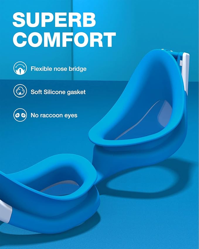 - [Comfortable Wearing] - This swimming goggles come with soft and flexible silicone gasket, adjustable split head strap, TPR ergonomic nose bridge, provides excellent suction and ensure non-slip coverage, that is designed to fit a wider range of face shapes for both women and men