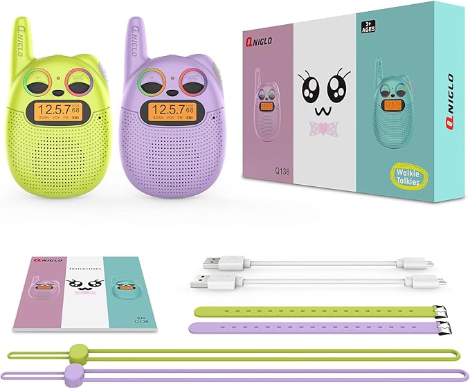- ๐ฃ๐ฒ๐ฟ๐ณ๐ฒ๐ฐ๐ ๐๐ถ๐ณ๐๐ ๐ณ๐ผ๐ฟ ๐๐ถ๐ฑ๐: Qniglo walkie talkies for kids rechargeable come in adorable colors and are well packaged in a stylish gift box, look attractive to kids. Excellent color box design makes it a wonderful birthday gift, Easter gifts, Valentine's gifts, Children's Day gifts, and Christmas gifts for 3 4 5 6 7 8 9 10 11 12-year-old girls, boys, or family group outdoor games like hiking, camping, traveling.