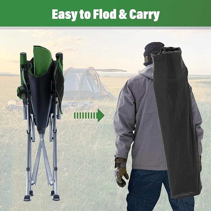 Camping Chair for Adults,Portable Folding Lawn Chair for Outside,Heavy Duty Camping Chair Support up to 330lbs,Collapsible Outdoor Beach Chair with Cup Holder(Green)