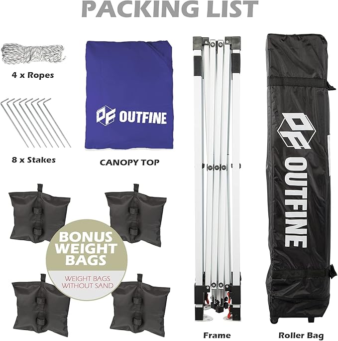 OUTFINE Pop-up Canopy 10x10 Patio Tent Instant Gazebo Canopy with Wheeled Bag,Canopy Sandbags x4,Tent Stakesx8 (Blue, 10 * 10FT)