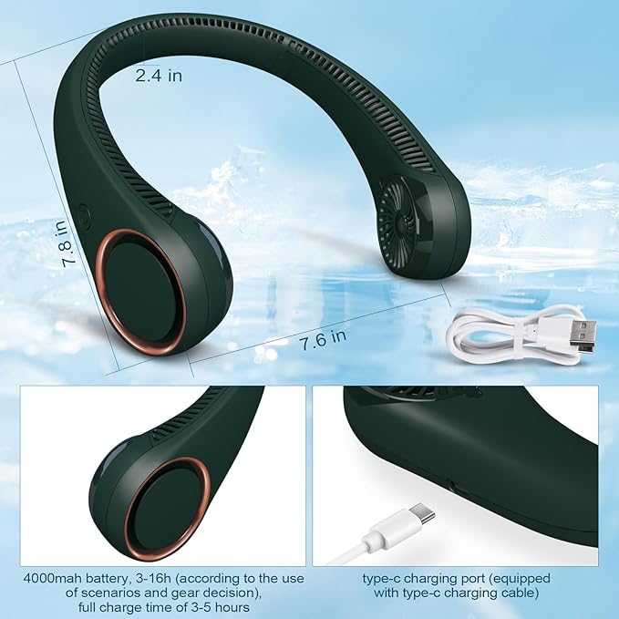 - Cool and safe: Upgraded neck fan with 78 air vents, innovative turbo fan blades and wind hole design, efficient division of air and feel the cooler breeze more gently. The design of the bladeless neck fan can be used safely by children and the elderly