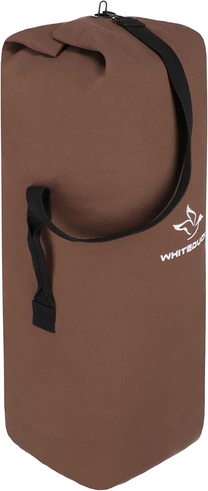 - 【 Heavy Duty Military-Grade Canvas & Top Load Design 】The WHITEDUCK Top Load Canvas Duffel Bag is built with 100% heavyweight cotton canvas for ultimate durability. Designed with a classic military-style top load opening, it offers easy loading/unloading. Includes a snap hook closure and inner storm flap for added security, compatible with small padlocks for secure transport. Ideal for outdoor enthusiasts, travelers, military personnel, and adventurers.