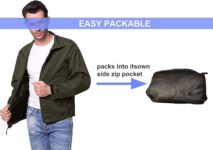 TRAILSIDE SUPPLY CO. Mens Windbreaker Jackets Lightweight Packable Jacket,Windproof and Dustproof