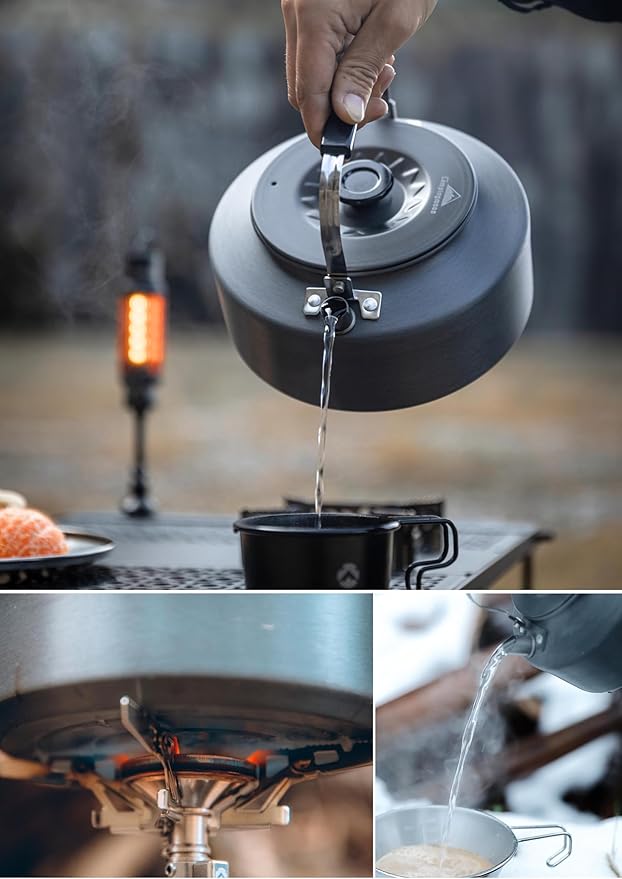 - This 1.5 Liter hard-anodized aluminum camping tea kettle is only 7.8oz weight, which is lightweight and compact for camping, backpacking.