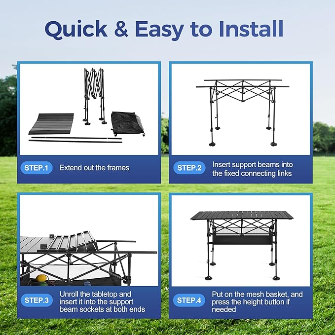 ALPHA CAMP Camping Table Outdoor Portable Table with Storage Adjustable Aluminum Table for Grill Travel Table Outdoor Picnic,Beach,BBQ,Backyards