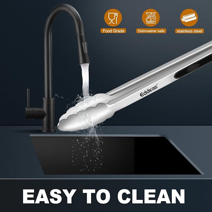 - STRUDY FOOD-GRADE STAINLESS STEEL TONGS - EDDEAS Extra Long BBQ Tongs For Grilling-are made of 1mm thick food-grade stainless steel in one piece for enhanced robustness and heat resistance, rust resistance and easy handling. The overall light weight and ergonomic features are maintained.