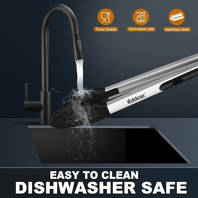 - FOOD GRADE MATERIALS - Eddeas tongs for cooking featuring a food grade silicone head, the tongs are gentle on your nonstick cookware so you can worry less about scratching and wear and tear, silicone is heat resistant up to 484 degrees Fahrenheit, making it a great option for nearly any cooking task.