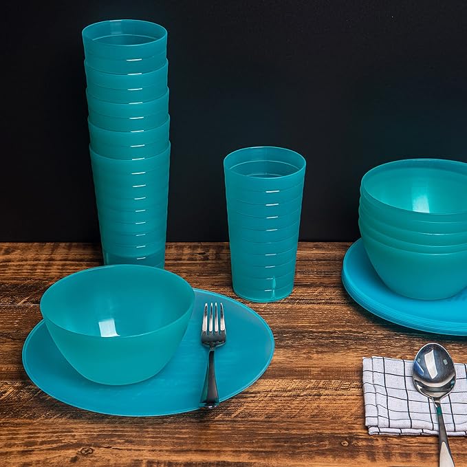 Plastic Dinnerware set, Unbreakable and Reusable Plastic Plate, Bowl and Tumbler | set of 18 Teal