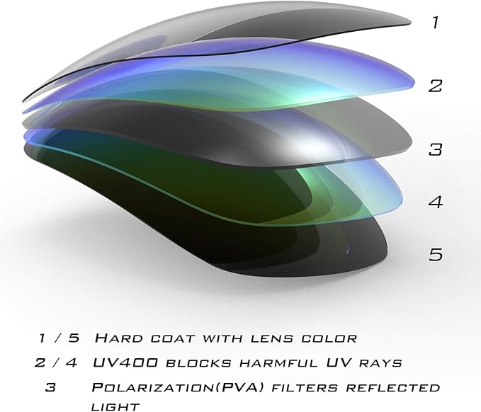 - Polarized Ultra-Light Lenses – Our polarized 1.0mm TAC (Tri Acetate Cellulose) lenses are manufactured with high quality Japanese and German raw materials. The precision 7 layer construction produces lenses with excellent optical quality and result in a lens that is ultra-lightweight, tough, and scratch resistant. The Polarization layer reduces glare caused by reflected light which helps to improve visual comfort, clarity and reduces eye strain.