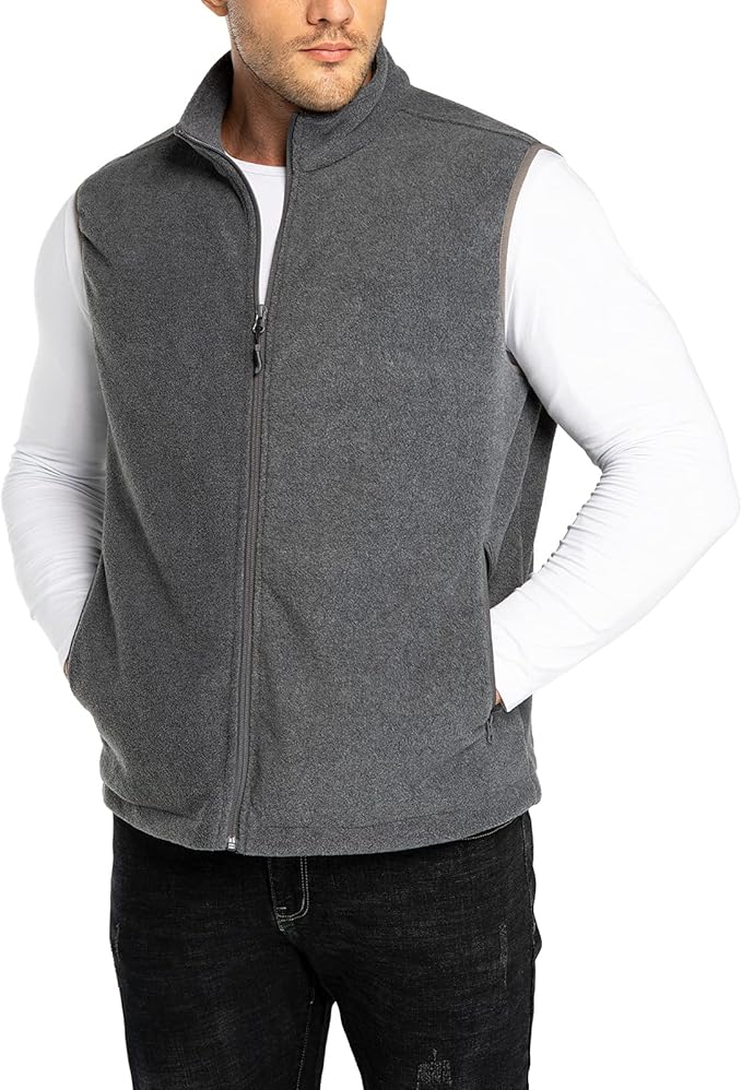 33,000ft Men's Fleece Vest, Lightweight Warm Zip Up Polar Vests Outerwear with Zipper Pockets, Sleeveless Jacket for Winter
