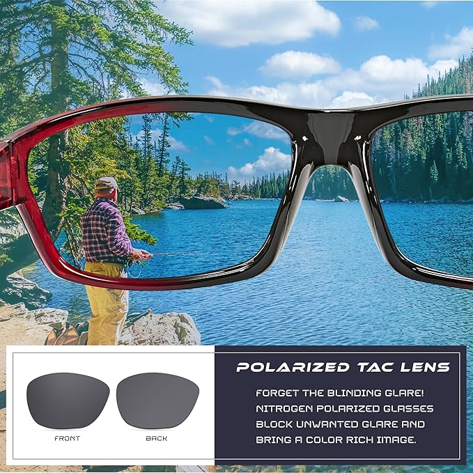 - 1.1MM TAC POLARIZED LENSES: Experience the outdoors glare-free! Nitrogen’s wrap-around sports sunglasses for men and women are equipped with polarized lenses that eliminate sun glare and deliver vivid, clear vision.