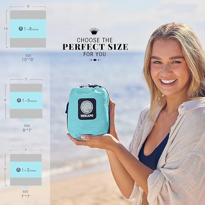 WEKAPO Beach Blanket Sandproof Waterproof, Extra Large Beach Mat, Oversized & Compact Sand Free Mat Quick Drying, Lightweight & Durable with 6 Stakes & 4 Corner Pockets