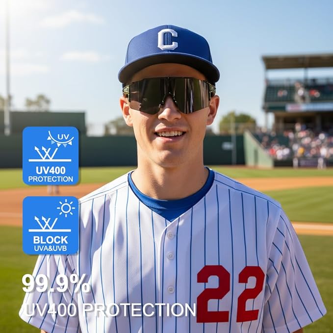 - LIGHTWEIGHT DESIGN:Our sports sunglasses made of durable and strong frame and uv protection polarized lens lightweight design,weighs only 25 g that you can’t feel you was wearing it;The frame can bend under pressure and contour your face comfortably;Ideal for usage by motorcycle ,cycling, driving, running, baseball,fishing, racing, golf and climbing, trekking or other outdoor activities