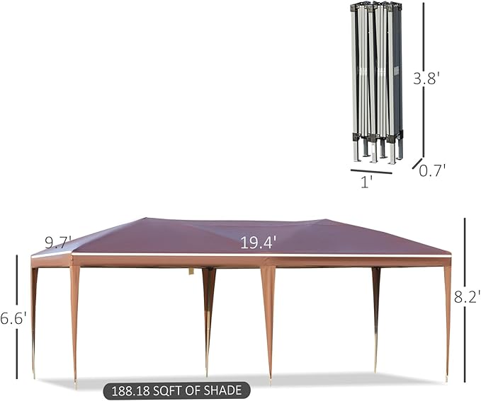 Outsunny 10' x 20' Pop Up Canopy Tent, Upgraded Heavy Duty Tents for Parties, Outdoor Instant Gazebo Sun Shade Shelter with Carry Bag, for Catering, Events, Wedding, Backyard BBQ, Coffee
