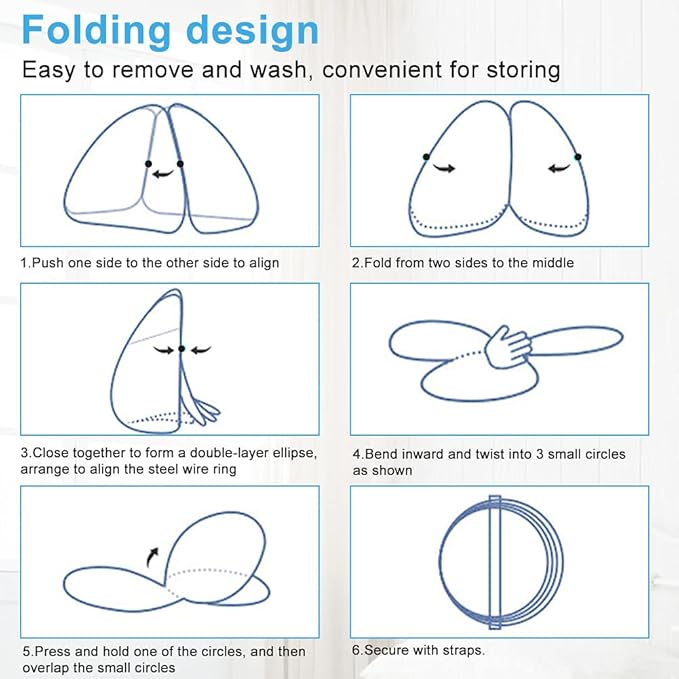- [Preminum Quality]: Polyester,Fine Sewing.The mosquito net structure is made of high-strength stainless steel wire, which can be bent freely at 720 degrees and is not easy to break. There is a special small fan zipper opening on the top of the net, which can be hung with a small fan.