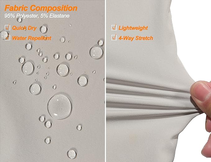 - Quick dry and breathable fabric dries fast; advanced water repellency keeps you cool and dry