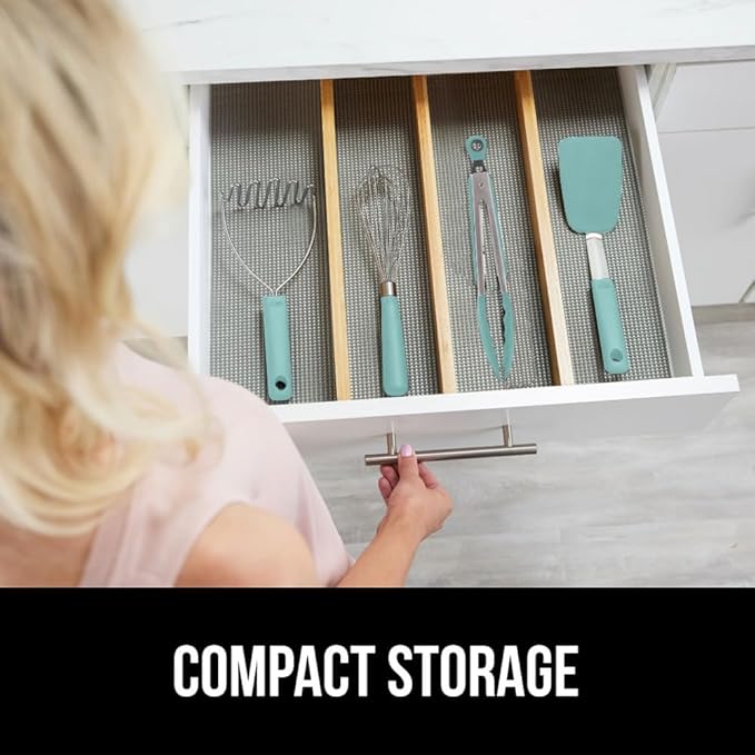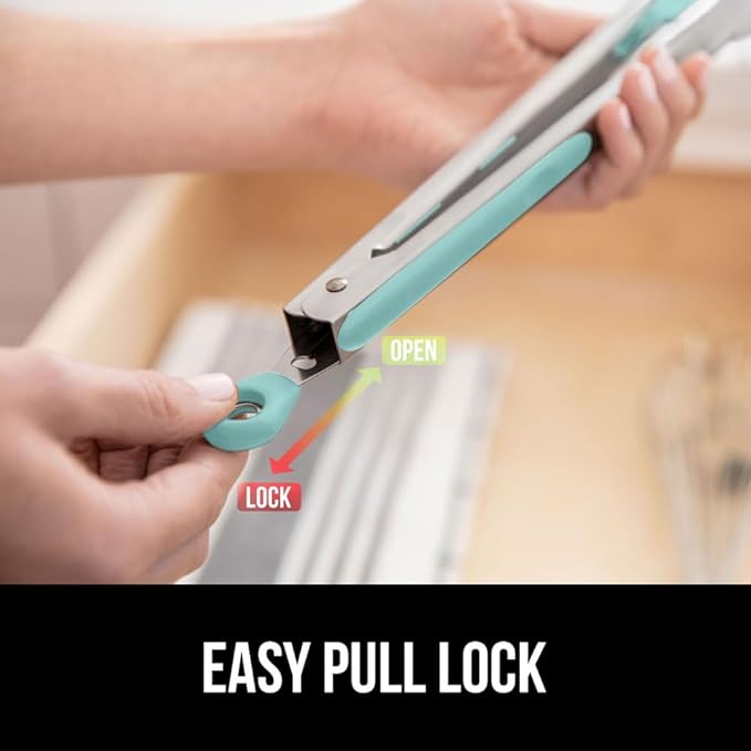 GORILLA GRIP Stainless Steel Heat Resistant Kitchen Tongs for Cooking, Set of 2 BBQ Tong, Non Scratch Silicone Tip for Pans, Strong Grip, Grab Food, Toss Salad, Air Fryer, Pull Lock, 7 + 9 Inch, Mint