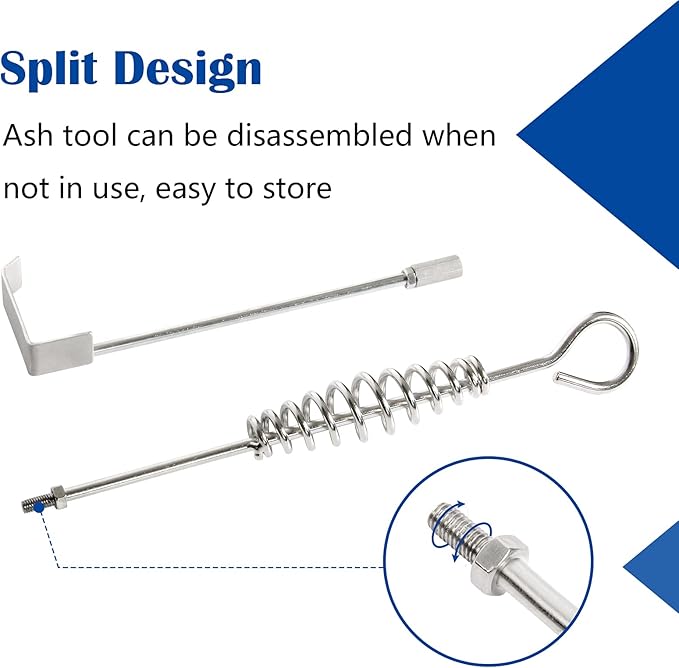 - Essential-Ash Cleaning Tool for Big Green Egg & Kamado Grills]This 20.5-inch ash poker is designed to easily remove ash from hard-to-reach corners and the back of your Big Green Egg, Kamado Joe, and other charcoal grills. Perfect for large and medium-sized grills, it ensures thorough cleaning for optimal airflow and performance.