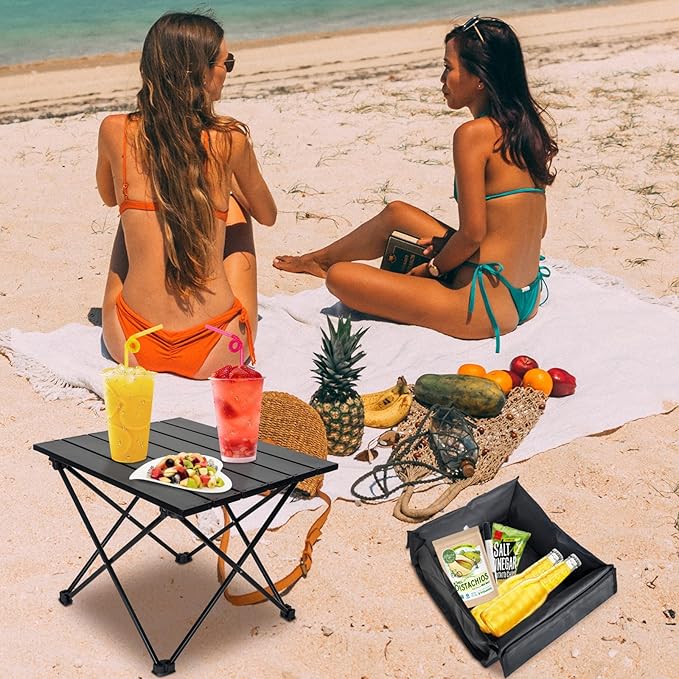 - Traveling Partner: The portable folding tables with good-enough height and size for drinks and snacks. It can meet the table you need out. As a beach table, grill table, mini table, laptop table, tent table, coffee table, picnic table and card table