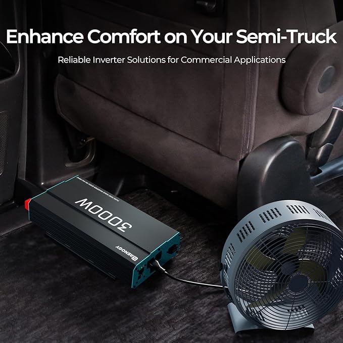 - 【POWERFUL DC-AC】This 3000 watt inverter 12V to 110V provides 3000W continuous DC to AC power, 6000W peak surge during load start-up, 12V to 120V AC pure sine wave with conversion efficiency >90%, reduces conversion loss.
