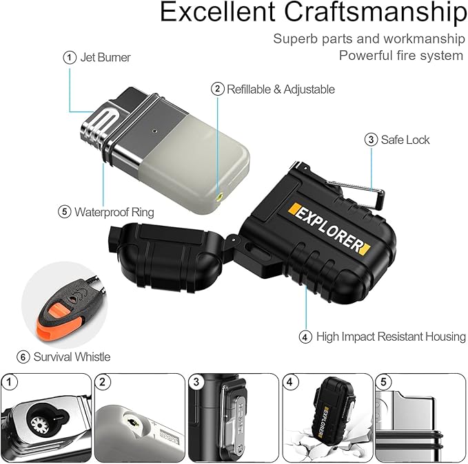 - 【Waterproof Lighter】The Jaerdhs butane lighter is built with rubber seal and safety lock. It's Weatherproof and can be used anywhere in any weather. A necessary tactical gear for the outdoors.