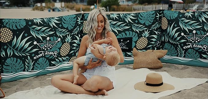 Premium 20 ft Beach Windscreen, Privacy Screen, Wind Blocker - Pineapple Oasis, Free Rubber Mallet and Carry Bag Included