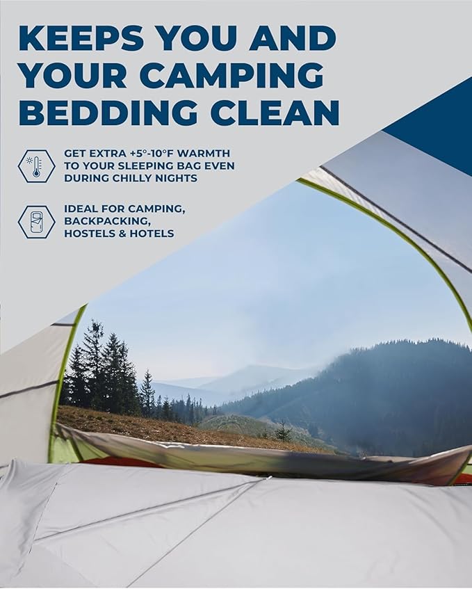 - KEEPS YOU AND YOUR CAMPING BEDDING CLEAN: Increase the longevity of your sleeping bag by protecting it from bacteria and sweat. Or bring it to camp and hostels to discourage those nasty bed bugs while at the same time adding extra warmth in cold weather and chilly nights.