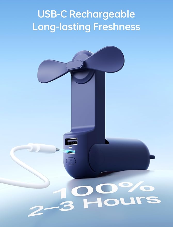 - 12-19 Hours Cooling Time: With up to 19 hours of cooling time on a single charge, this mini handheld fan ensures you stay refreshed during travel, concerts, and outdoor adventures; Conveniently rechargeable via USB