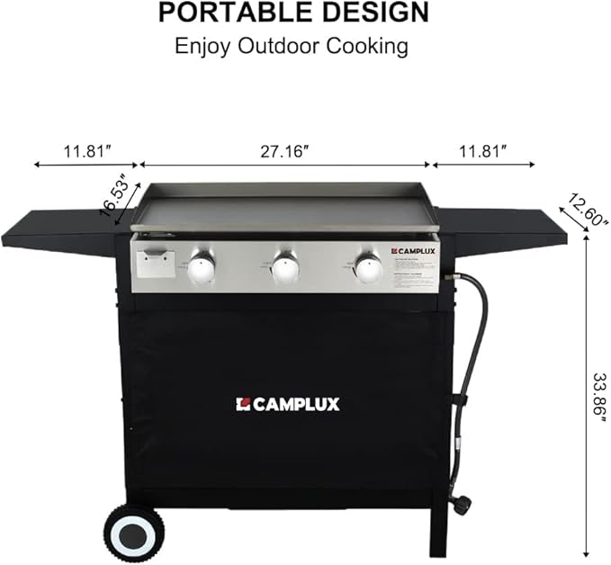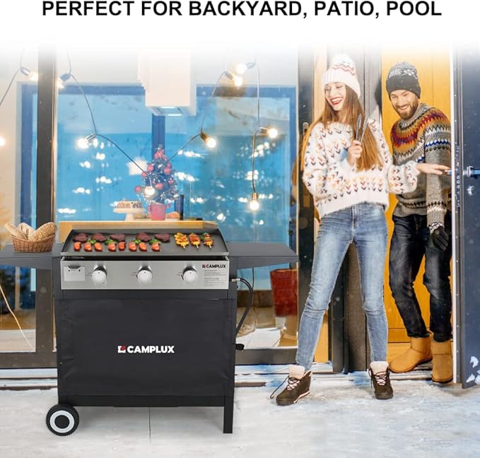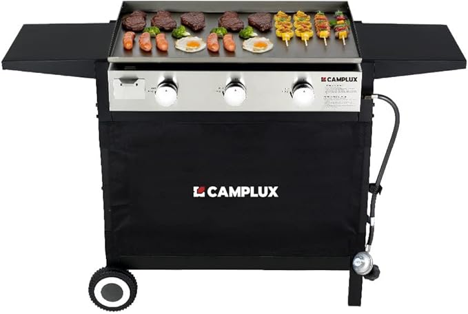 CAMPLUX ENJOY OUTDOOR LIFE Flat Top Grill Griddle,Camplux Propane gas outdoor grill Griddle Cooking Station for Camping,BBQ,Tailgating or Picnicking, Stainless Steel, Silver, Black