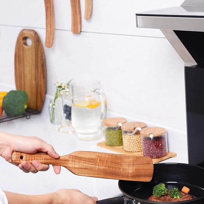 - Natural Teak Wood and Healthy: Our sturdy wooden Spurtle set is made of natural teak wood that won’t deform easily and is highly heat resistant,non-toxic and without BPA,without harmful coating,that does not leach toxic chemicals into food while cooking