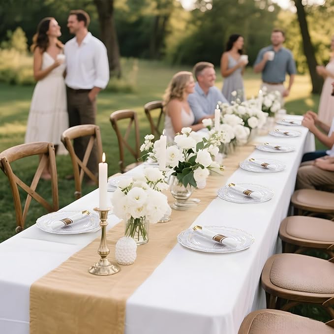 - Life's Table Companion: These high-quality gold disposable plates, paired with rolled napkins cutlery, add a lively and luxurious atmosphere to your table. Life needs stimulation. The table decorated with this gold plastic dinnerware is elegant and exquisite, which can always bring unique surprises to your party and your distinguished guests.