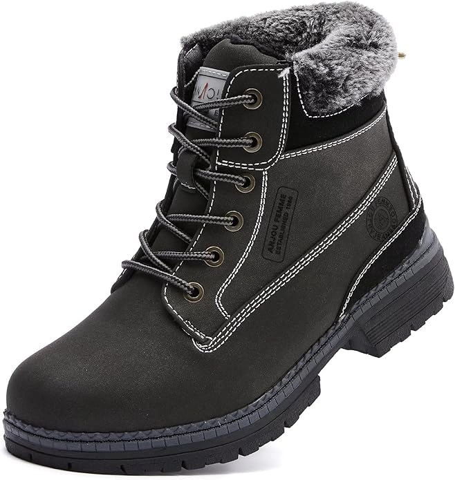 ANJOUFEMME Womens Hiking Snow Winter Boots - Waterproof Work Ankle Boots for Women Comfortable Warm Fur Boots for Backpacking Cycling