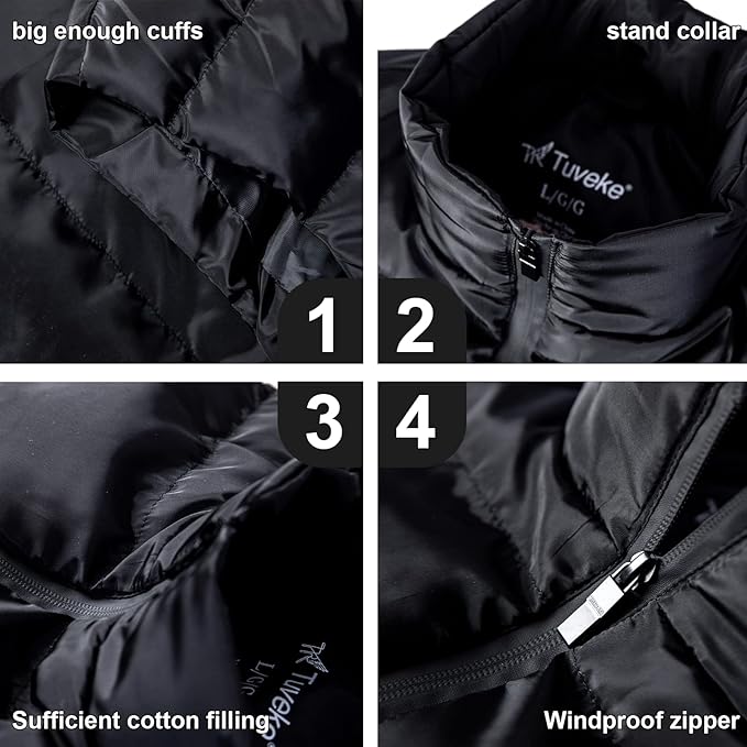 TUVEKE Men's Puffer Vest Water-Resistant winter outdoor Zipper Sleeveless Warm puffey jacket Size M To 3XL(Multicolor)