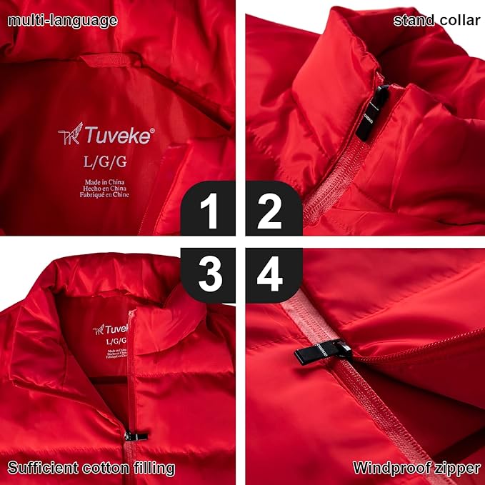 TUVEKE Men's Puffer Vest Water-Resistant winter outdoor Zipper Sleeveless Warm puffey jacket Size M To 3XL(Multicolor)