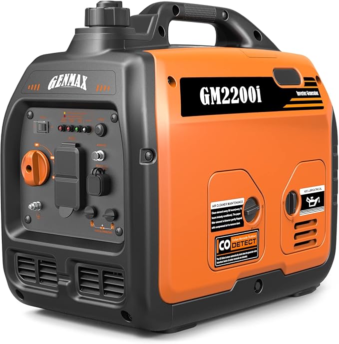 - 【Powerful Engine And Safe For Sensitive Electronics 】The GENMAX 2200 Starting Watts Inverter Generator is powered by a 79.7cc 4- stroke OHV gas engine,with inverter technology produce 2200 Starting Watts/ 1800 Running Watts clean power (less than 3% THD), confidently connect your sensitive electronics such as TV, lights, fans, small power tools and more on camping trips, etc.
