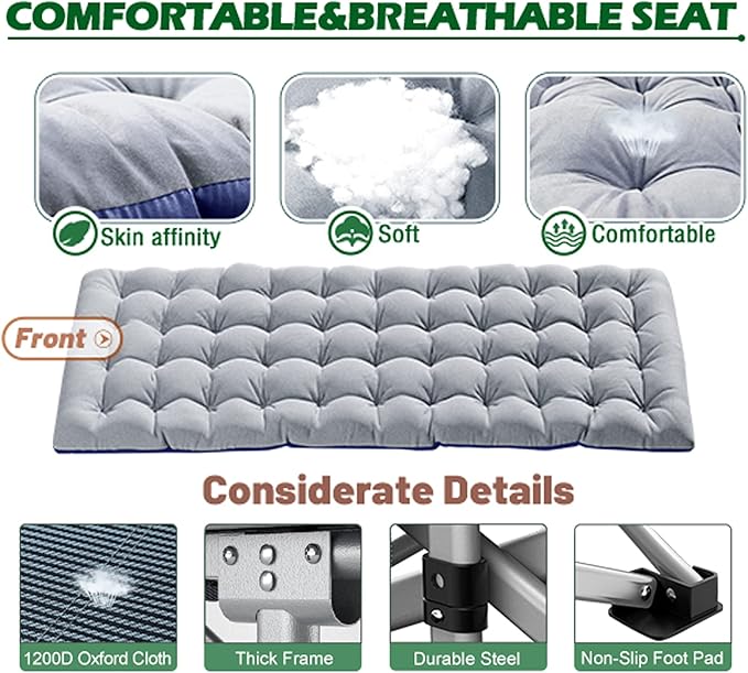 - Premium Materials: Made from double-layered 1200D polyester and a sturdy steel frame; thick oxford material prevents discomfort from frame bars; elevated headrest for added comfort; oval-square shape tube measures 1" for better support
