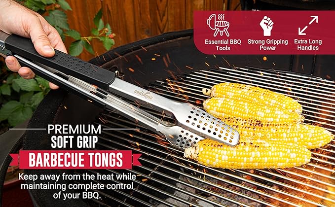 - SUPERIOR CONTROL & EASY TO STORE: Equipped with torsion spring technology, these cooking utensils offer precision control, making them essential for any grill master's BBQ accessories.