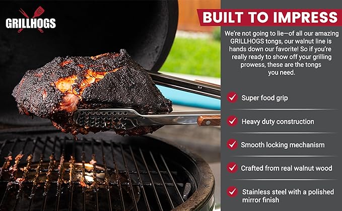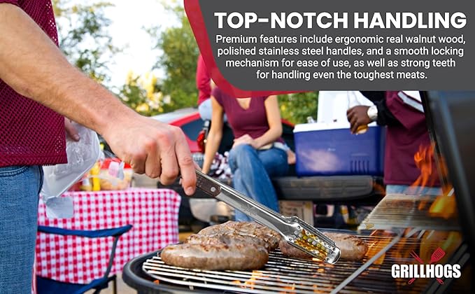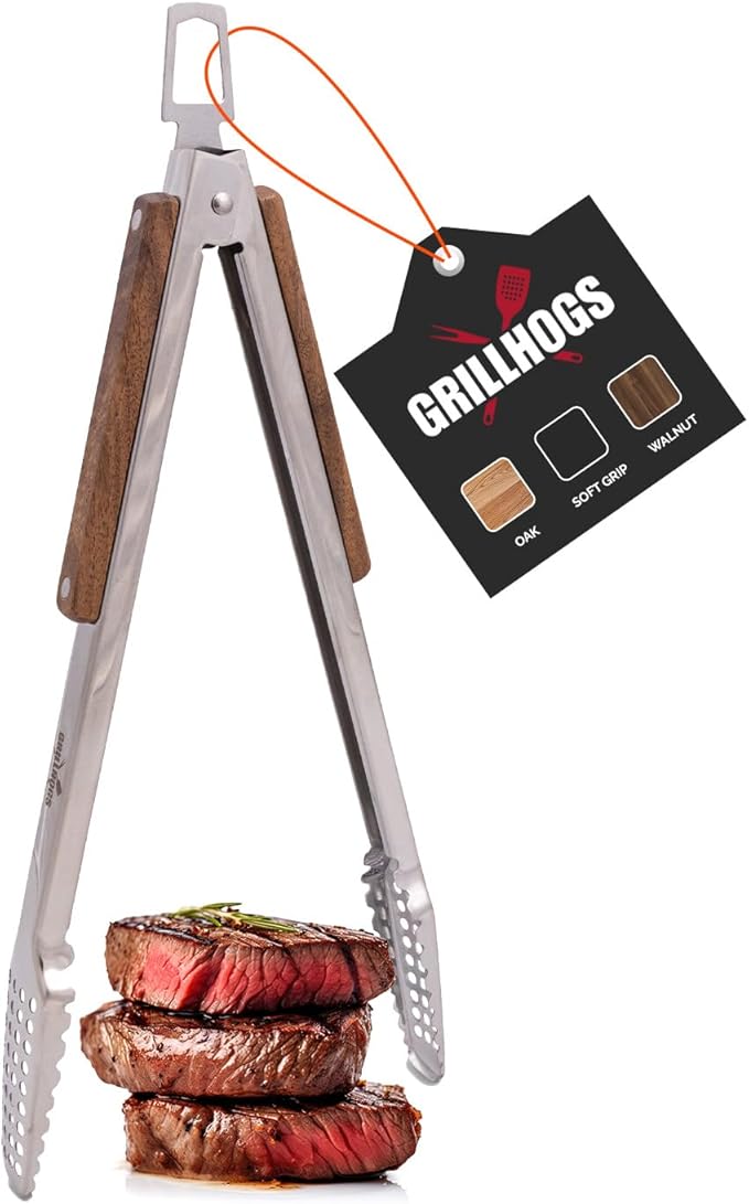 - ERGONOMIC NON-SLIP DESIGN: The nostalgic walnut wood handles provide a comfortable grip, making these kitchen tongs a stylish addition to your kitchen utensils set collection.