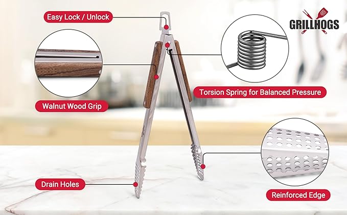 - SUPERIOR CONTROL & EASY TO STORE: Equipped with torsion spring technology, these cooking utensils offer precision control, making them essential for any grill master's BBQ accessories.