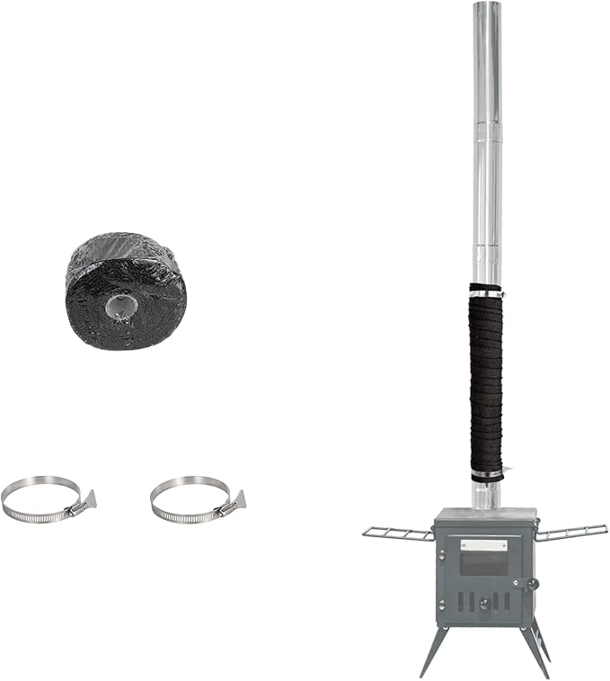SoloWilder Fireproof Chimney Webbing Anti Scalding Camping Stove Pipe Wrap Protector with 2 Clamps