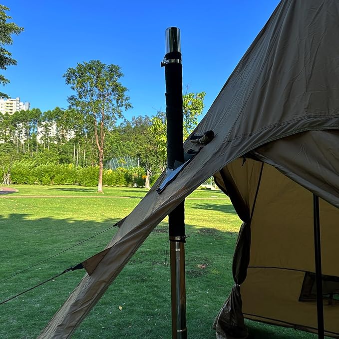 - Fiberglass Material: Fiberglass is a new type of synthetic fiber with fire retardant ability. It will only carbonize when the temperature around the fireproof webbing reaches 968F/520℃. It does not burn or melt of its excellent fire-retardant properties. While protecting your tent, it will not leave any dirt on the stovepipe.
